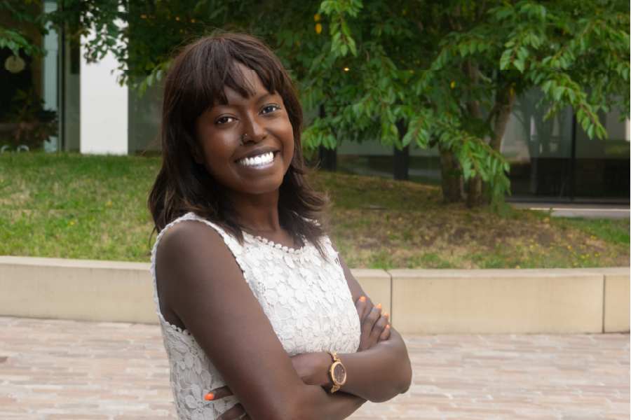 Ina De Becker buiten in het groen aan het bellen dankzij  haar voordelig GSM abonnement